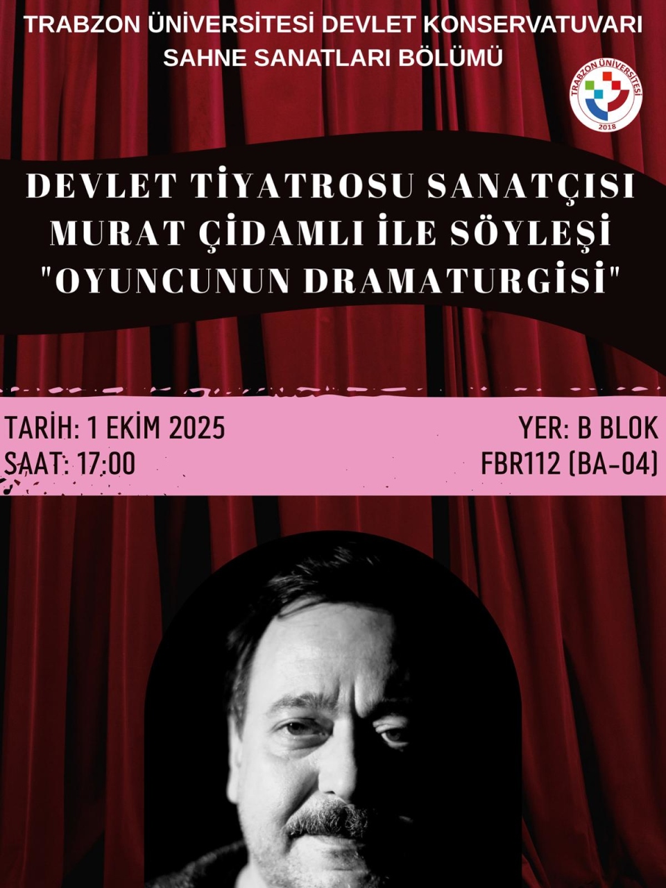 Devlet Tiyatrosu Sanatçısı Murat Çidamlı ile "Oyuncunun Dramaturgisi" üzerine keyifli bir söyleşi gerçekleştirdik. Trabzon Devlet Tiyatrosu Müdürü Ahmet Uzuner'in de eşlik ettiği bu güzel söyleşi için her iki sanatçıya da desteklerinden ötürü teşekkürlerimizi sunuyoruz.